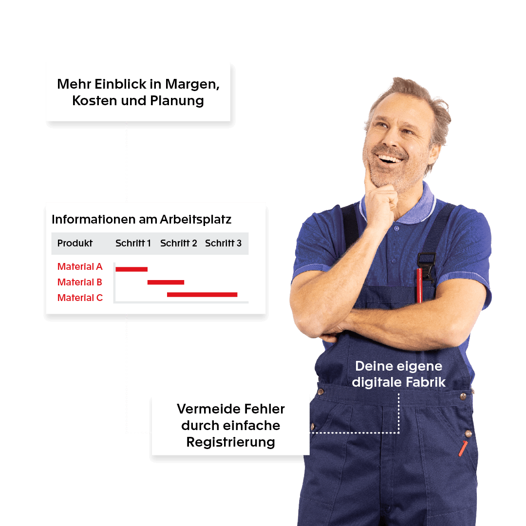 Produktionskosten und -mengen lassen sich dank automatischer Auftragsanlage jederzeit überblicken. Du sparst Geld & Zeit und sorgst für zufriedene Kunden.
