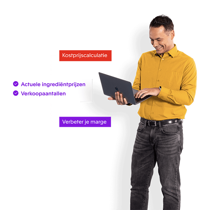 - Ingrediënten en prijzen automatisch bijgewerkt: 100+ leverancierskoppelingen zoals Sligro, HANOS, Bidfood